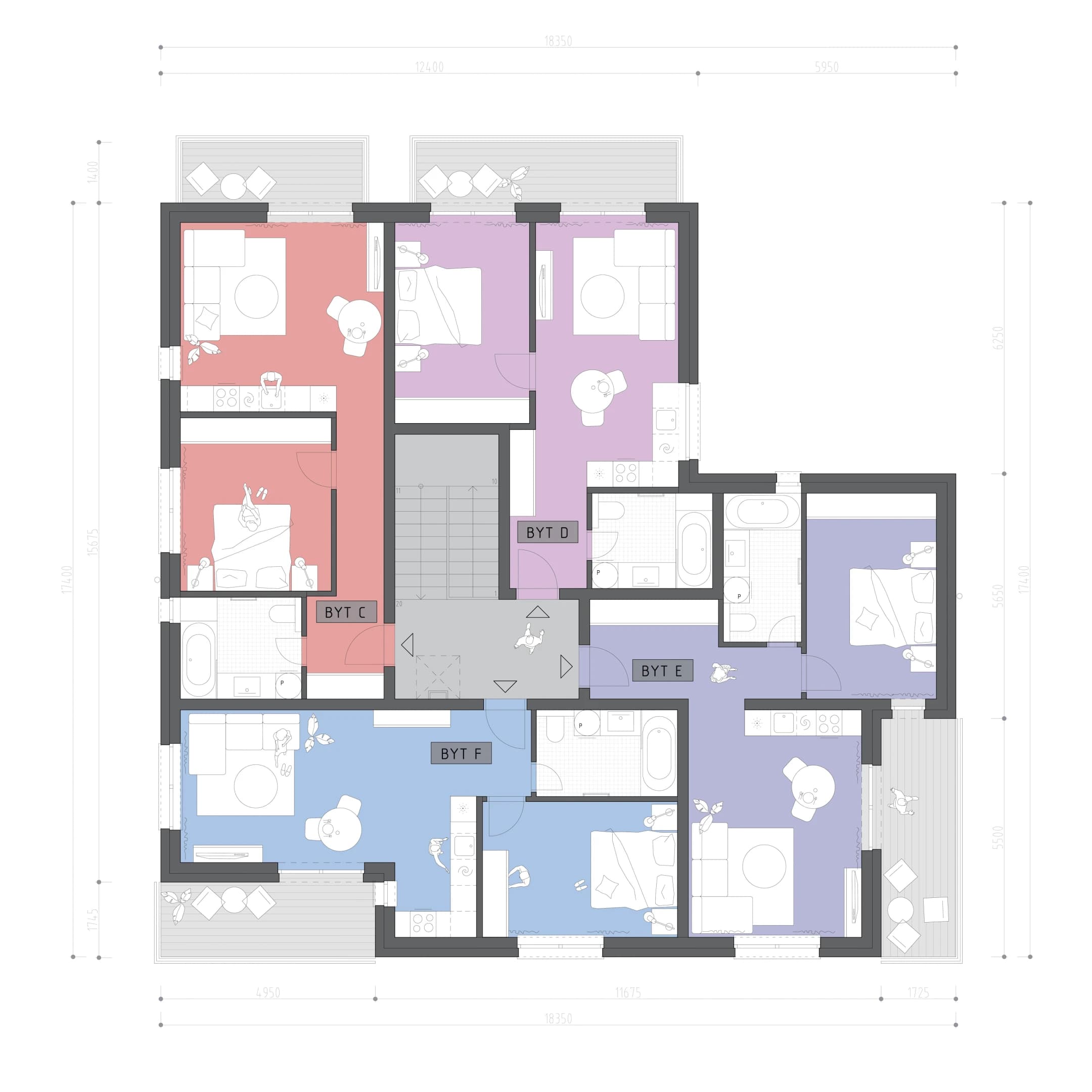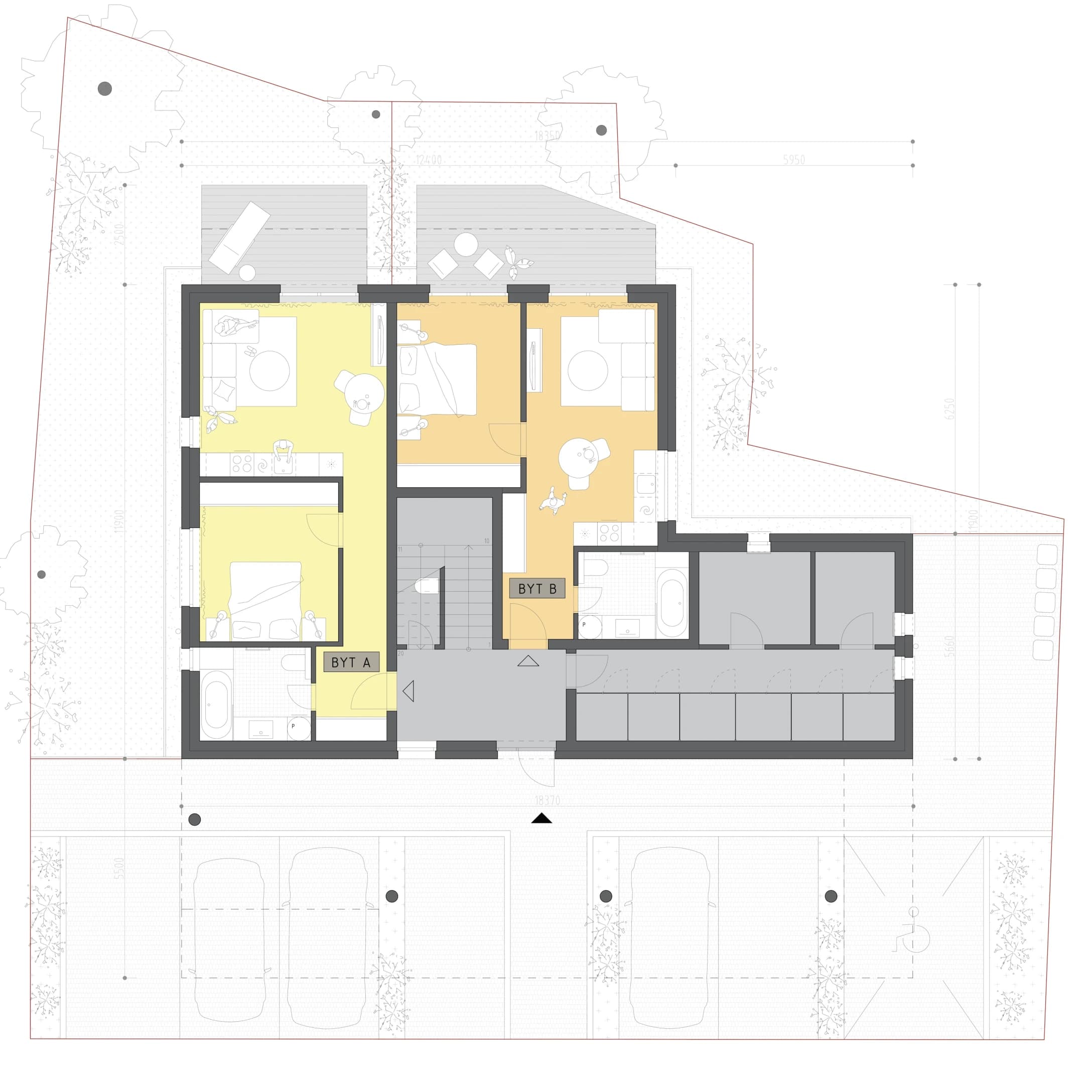 Dva byty na prízemí majú aj vlastnú záhradu orientovanú do tichej a súkromnej časti pozemku.