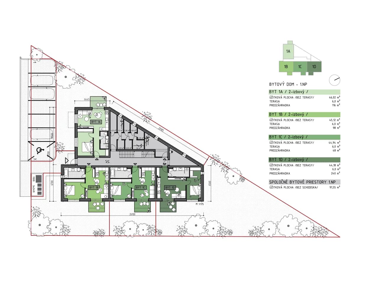 Štyri byty na prízemí majú aj vlastnú záhradu orientovanú do tichej a súkromnej časti pozemku.