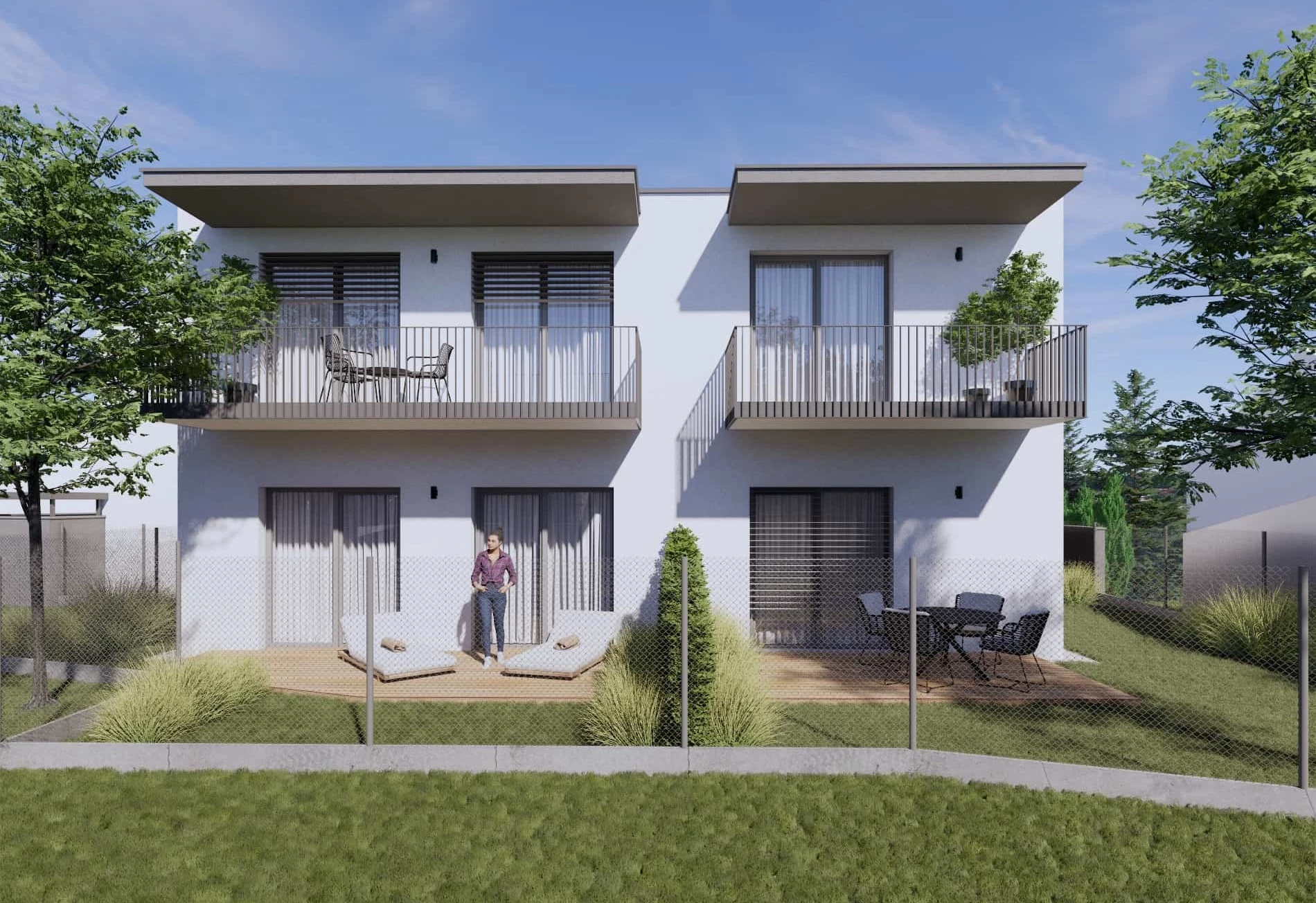 Dva byty na prízemí majú aj vlastnú záhradu orientovanú do tichej a súkromnej časti pozemku.