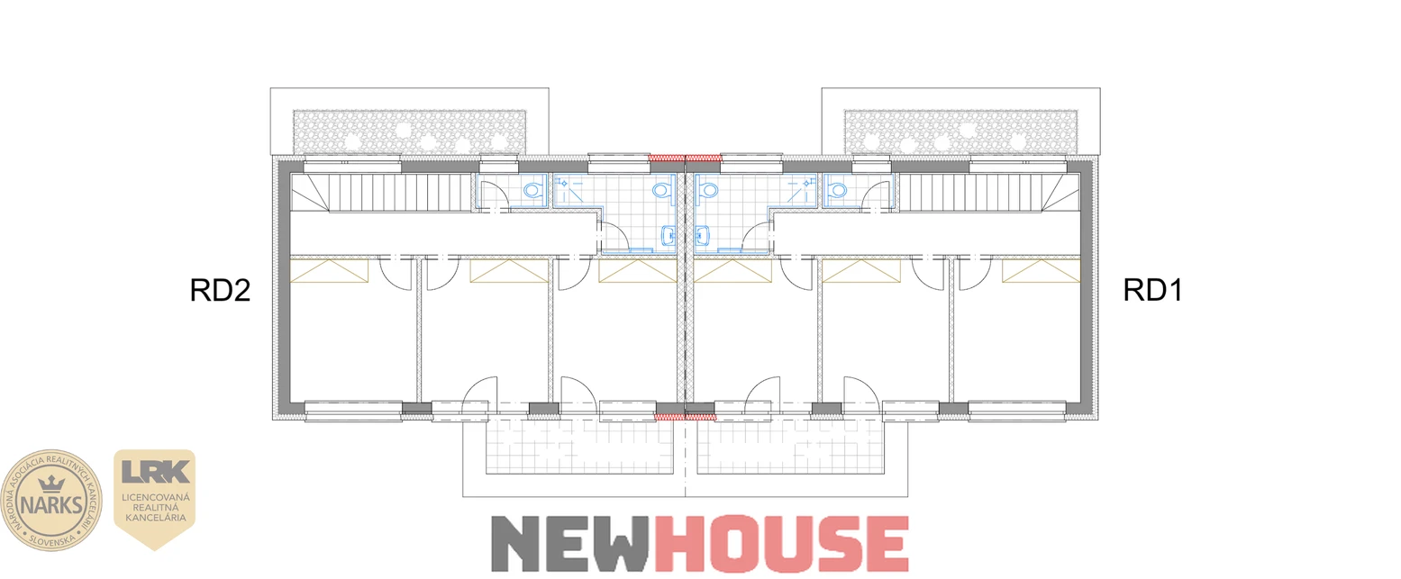 Rodinný dom tvorí súčasť stavebného objektu "dvojdom" a každý z nich tvorí samostatný celok s vlastným obvodovým murivom Porotherm hr. 300 mm a navyše sú ešte oddelené AKU izoláciou.