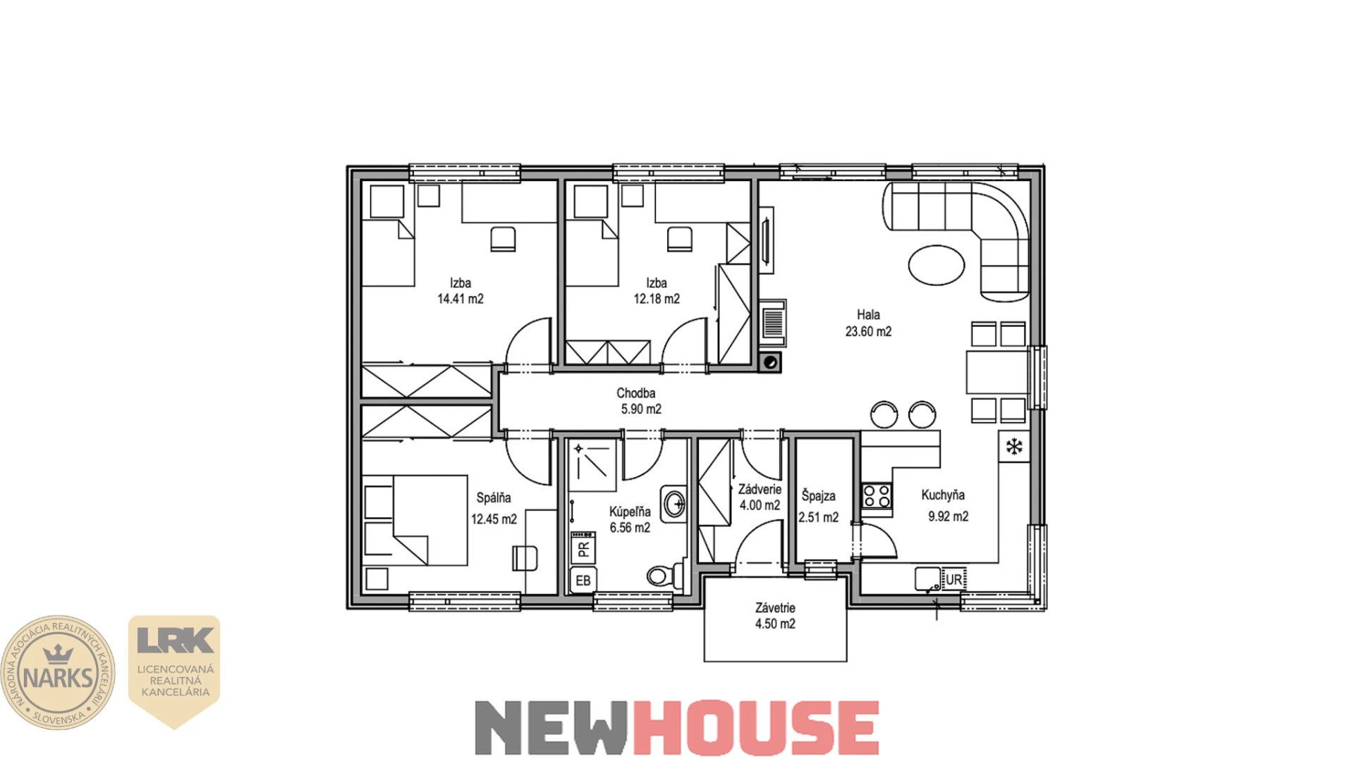NEW HOUSE ponúka na predaj zariadenú nízkoenergetickú novostavbu 4i rodinného domu typu bungalov, ktorý je postavený na rovinatom a slnečnom pozemku s celkovou výmerou 450 m² v žiadanej a bezpečnej lokalite na ulici Cez Ohrady v meste Trenčín - mestská časť Záblatie.