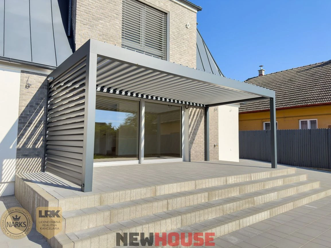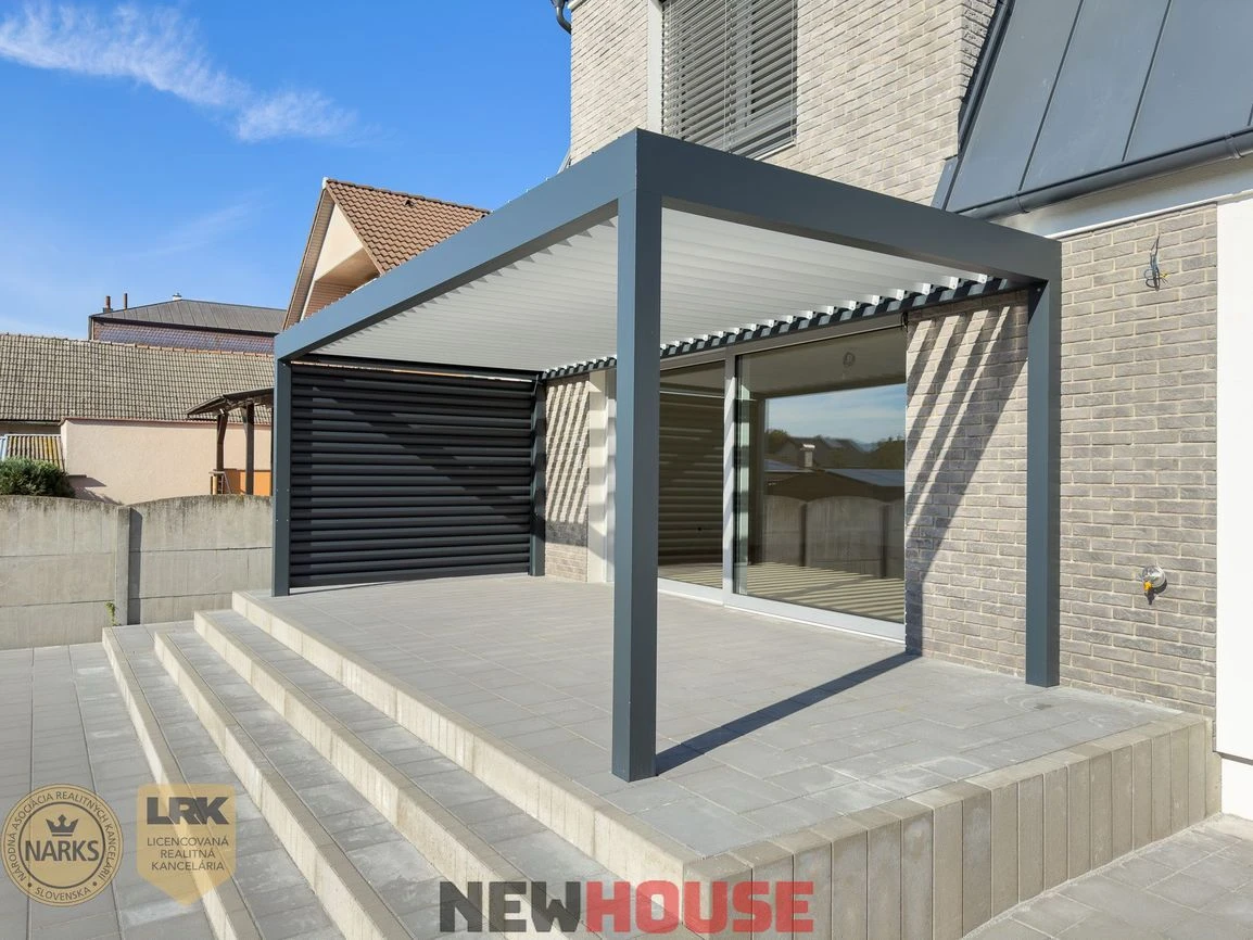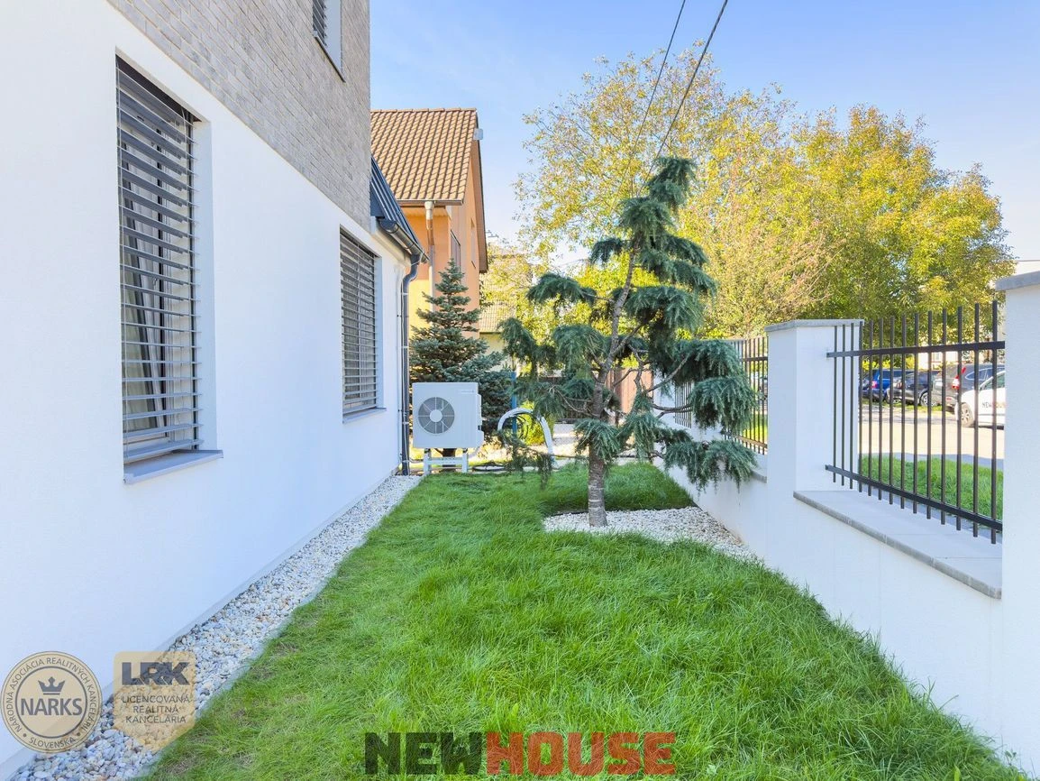 Naše domy sú postavené z precízne vyberaných materiálov, ktoré nie sú bežné pri konkurenčných developerských projektoch. Stavbu sme realizovali z najkvalitnejšej tehly značky Porotherm. Plastové okná a dvere dodávame výlučne z nemeckého profilu Salamander so 6 komorovým systémom a izolačným trojsklom. Vykurovanie v tomto projekte je zabezpečené tepelným čerpadlom, ktoré je mimoriadne energeticky úsporné a bude ohrievať vodu v podlahe – podlahové vykurovanie rozdelené na viacero okruhov s možnosťou regulácie jednotlivých vykurovacích oblastí rodinného domu. Fasádne zateplenie bolo zrealizované výhradne z minerálnej vaty a eps o hrúbke 200 mm, do ktorého sme zapustili exteriérové žalúzie.