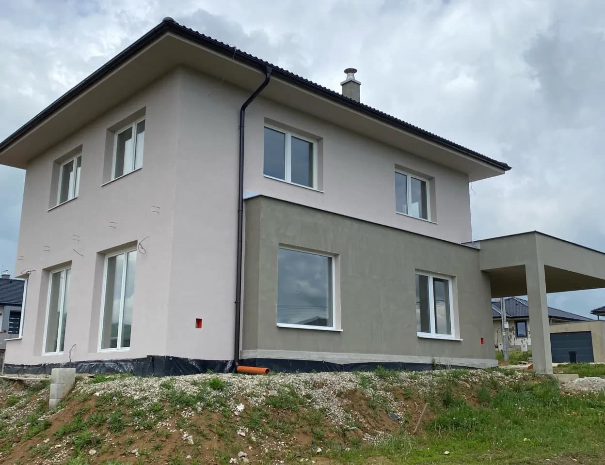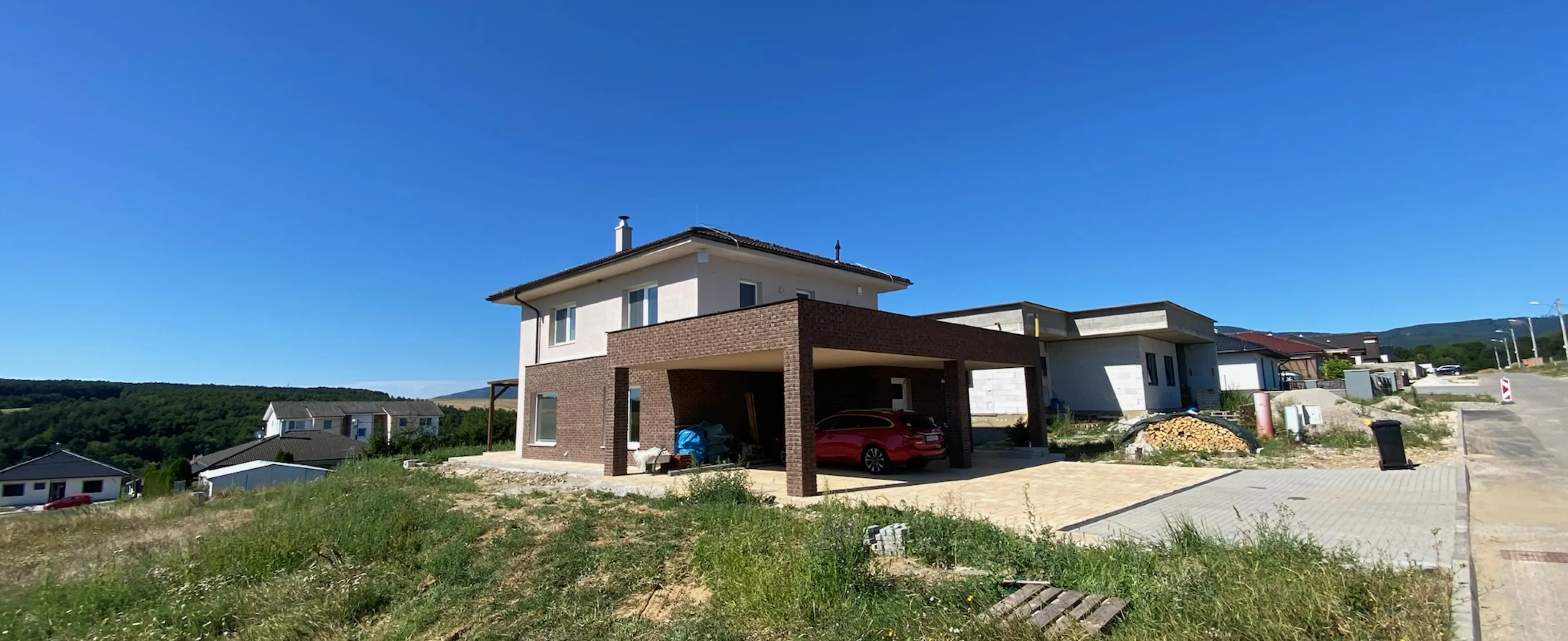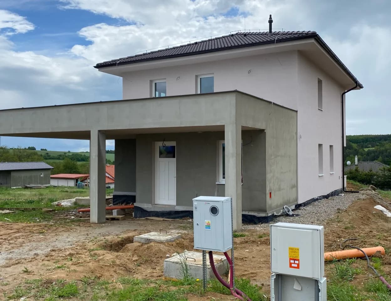 Výstavba poschodového rodinného domu s prístreškom v novovybudovanej lokalite v obci Veľká Hradná.