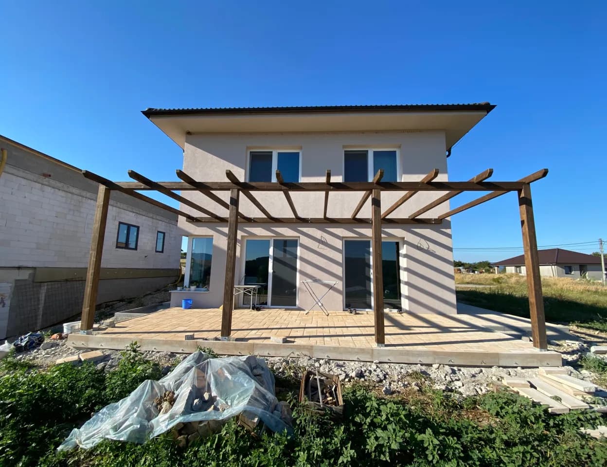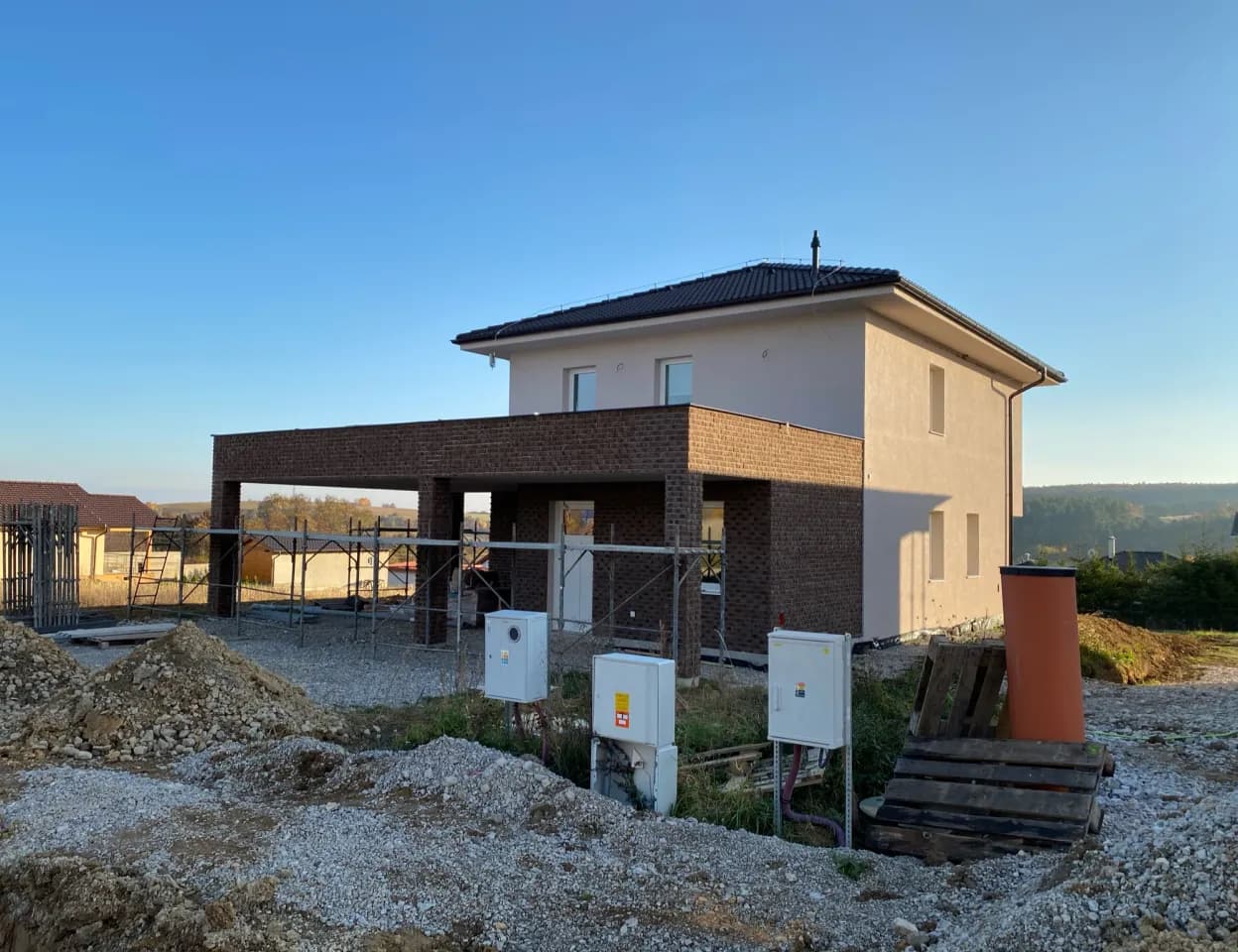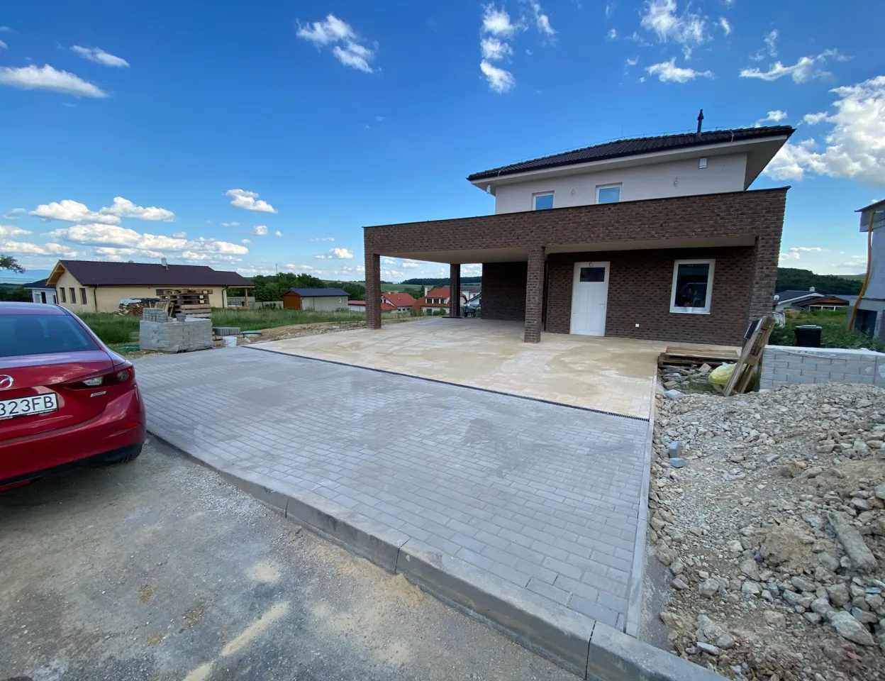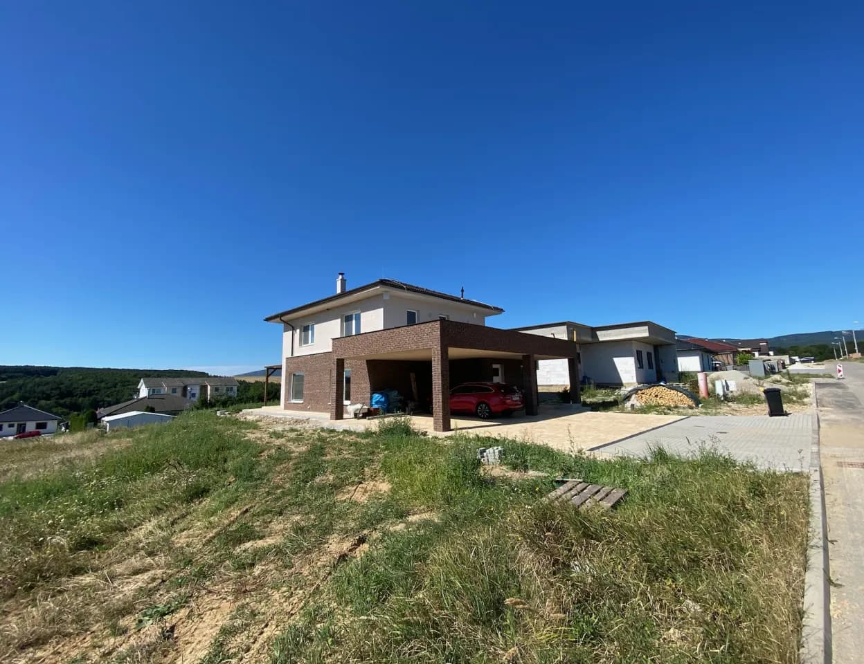 Výstavba poschodového rodinného domu s prístreškom v novovybudovanej lokalite v obci Veľká Hradná.